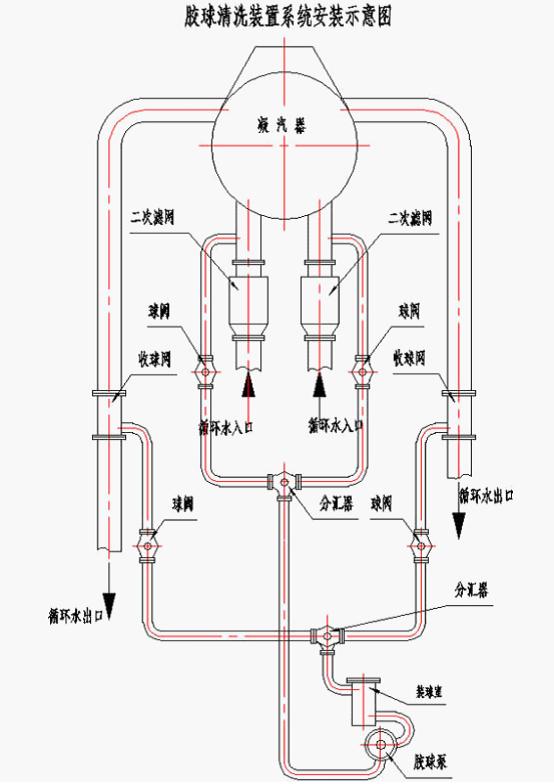 一、凝汽器膠球清洗系統安裝方法如下: