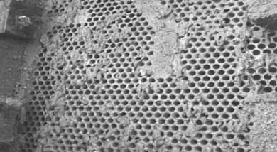 凝汽器膠球清洗裝置中經(jīng)過多年的運(yùn)行,該海水淡化裝置一直未清洗過,產(chǎn)量逐漸下降了10%左右。檢修時(shí)發(fā)現(xiàn):