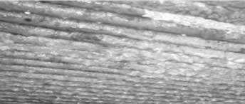 清洗后,前7效蒸發(fā)器換熱管外表面與末效冷凝器換熱管內(nèi)表面都清潔、光滑,無明顯附著垢,無點(diǎn)蝕及二次浮銹,并有致密氧化膜,見圖6~圖7。