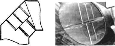 由于現(xiàn)場(chǎng)空間有限,不可能在收球網(wǎng)上方留出相當(dāng)?shù)闹惫芏危虼耍谀鲗缢畯澒芏沃兴胶附右徊讳P鋼折流板,見(jiàn)圖2。該折流板位于彎管段中心線處,將循環(huán)水流一分為二,用以規(guī)整彎管內(nèi)循環(huán)水流,使循環(huán)水能夠均勻地流經(jīng)收球網(wǎng),以利于膠球收集。